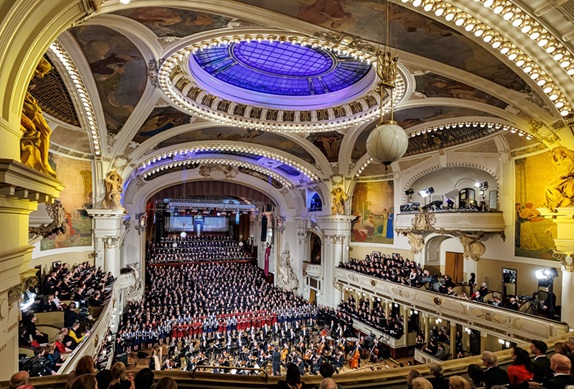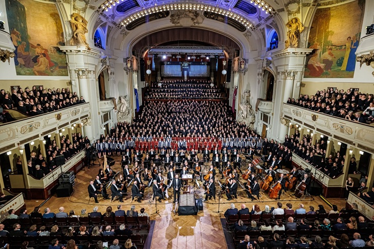 Největší sborový koncert Roku české hudby. Životní zážitek! Na pódiu Smetanovy síně Obecního domu se 22. prosince 2024 sešlo čtyřicet amatérských sborů z celé republiky, sólisté a SOČR pod taktovkou Petra Popelky.